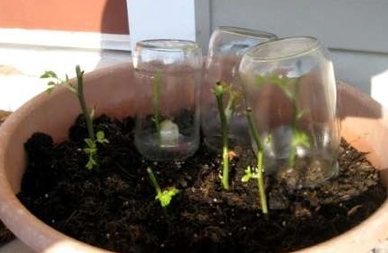 • Накрыть каждый черенок стеклянной банкой или частью пластиковой бутылки.