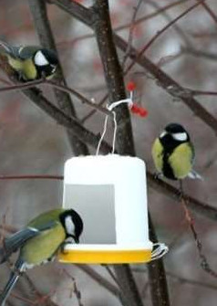Такая поделка будет не только украшением сада, но и его полезным элементом. Так прилетающие полакомиться зернышками птички могут помочь в борьбе с вредителями садовых растений. Придать особую индивидуальность созданной своими руками поделке можно путем ее окрашивания и нанесения несложных орнаментов.