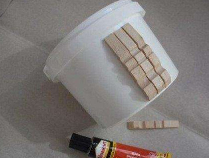 После этого следует приклеить их к майонезному ведерку с помощью суперклея.