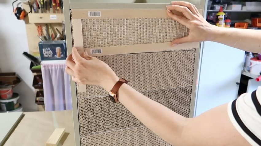 Просверлите отверстия для новых ручек, используя сверло по дереву. Прикрепите ручки к дверцам шкафов.