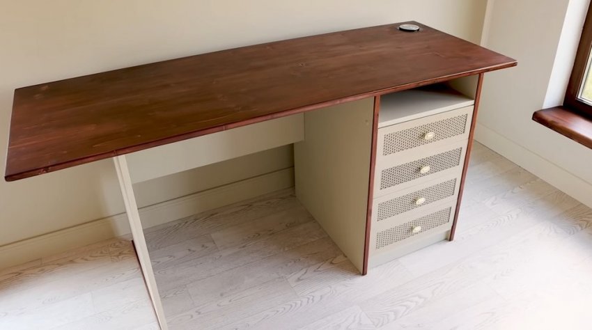 Переделанный стол выглядит очень стильно и современно, он станет прекрасным дополнением интерьера комнаты.