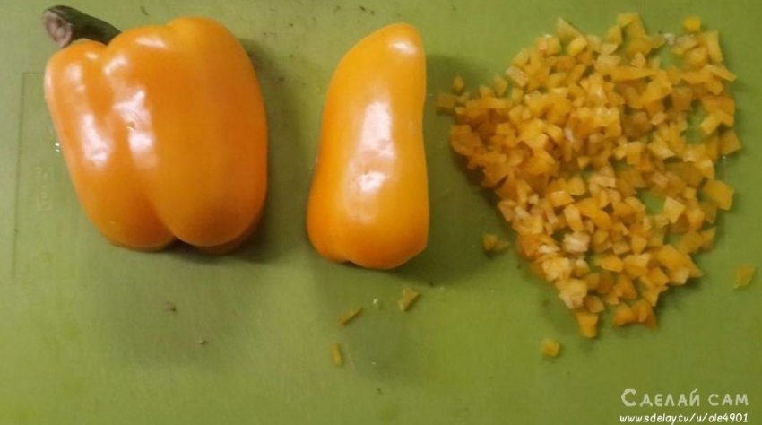 Нарезаем овощи, грибы, оливки на мелкие кубики. На сковородке поджариваем нашу начинку (сначала обжариваем грибы, потом добавляем овощи, кукурузу). Далее, выключаем огонь, натираем сыр. Солим по вкусу.
