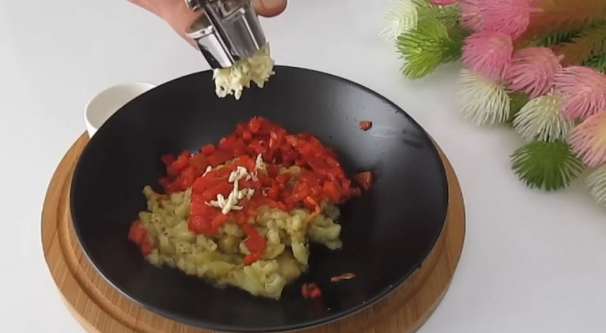 Блюдо можно подавать к столу с овощной закуской. Для ее приготовления запеките один баклажан и один болгарский перец, нарежьте их небольшими кусочками. Добавьте к овощам два зубчика чеснока и 2 столовых ложки натурального йогурта.