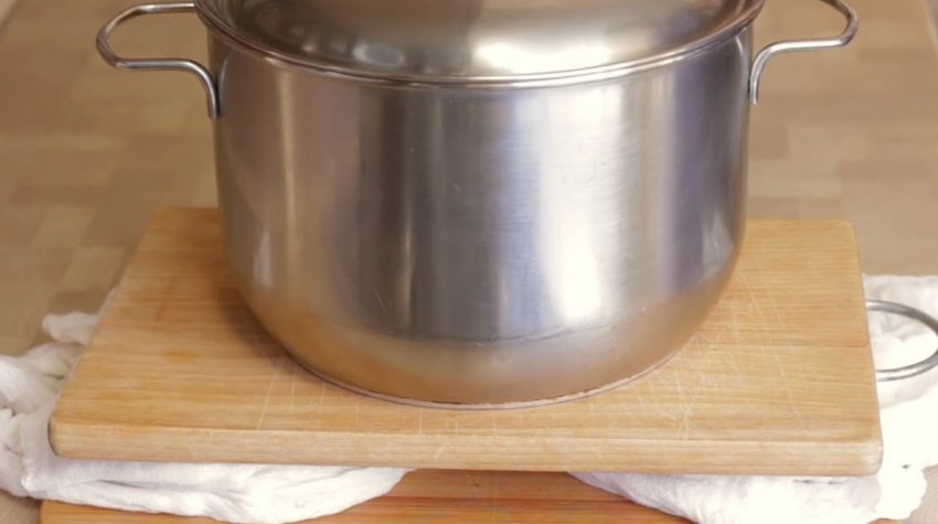 Поместите влажную марлю, сложенную в 4 слоя, в миску небольшого размера и выложите яблочную массу. Переложите яблочный сыр в марле на доску, накройте второй доской и поставьте сверху груз. Оставьте десерт в таком состоянии на сутки.