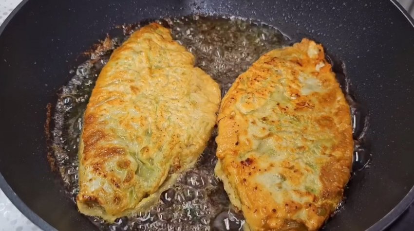 Обжаривайте блюдо с двух сторон на раскаленном растительном масле до золотистой корочки.