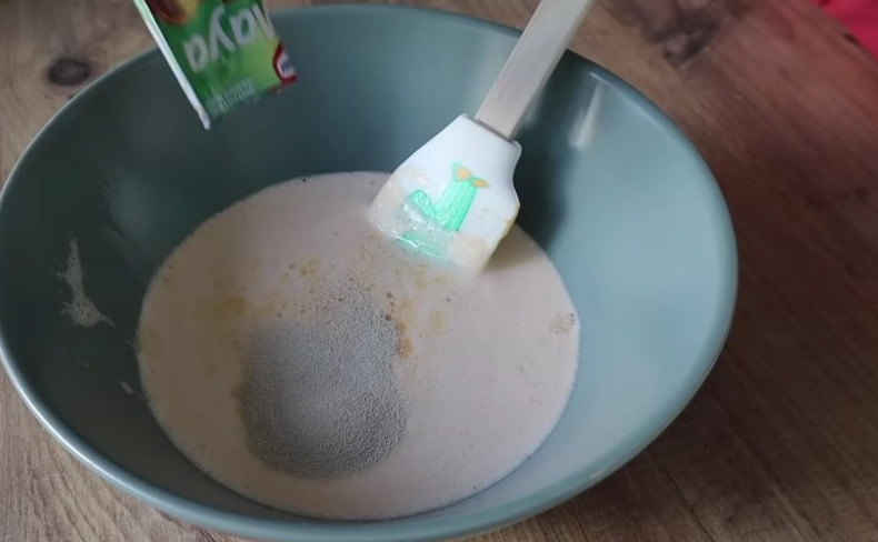 Процедите полученную массу через мелкое сито, что поможет избавиться от всех пленок мандаринов. Добавьте к полученной массе дрожжи и хорошо перемешайте.