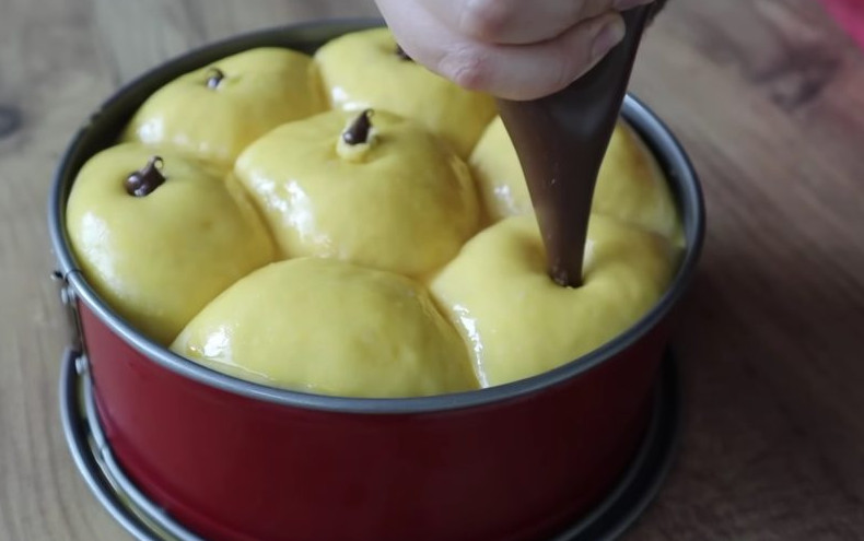 С помощью кондитерского мешка наполните каждую часть пирога шоколадной пастой.