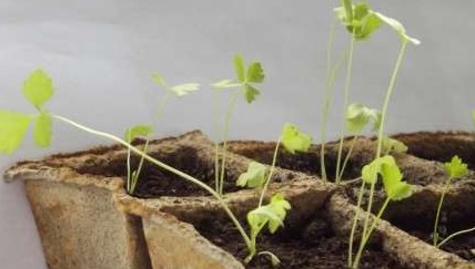 Для выращивания мощной рассады корневого сельдерея поддерживайте температуру воздуха на уровне 16?С. В более теплом помещении побеги будут тянуться ввысь. Чрезмерному их удлинению будет содействовать также недостаток солнечного света. Соорудите над ящиками устройство для дополнительного освещения, если хотите получить крепкую рассаду.