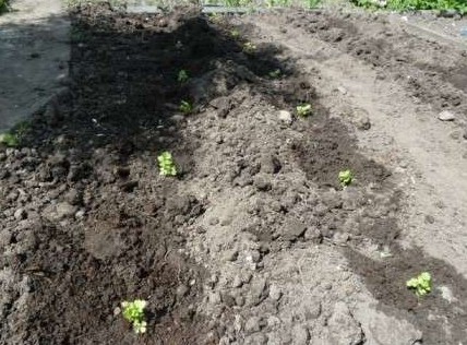 Осуществляйте посадку корневого сельдерея на дачный участок, проделав лунки или борозды — как вам удобнее. Ни в коем случае не заглубляйте в землю точку роста, если хотите вырастить крупный клубень. Расстояние между соседними растениями не должно быть менее 20 см. Перед посадкой внесите в углубления небольшое количество азотного удобрения. Это поможет вырастить большие и ароматные клубни. Пока рассада не укоренится на новом месте, укройте ее.