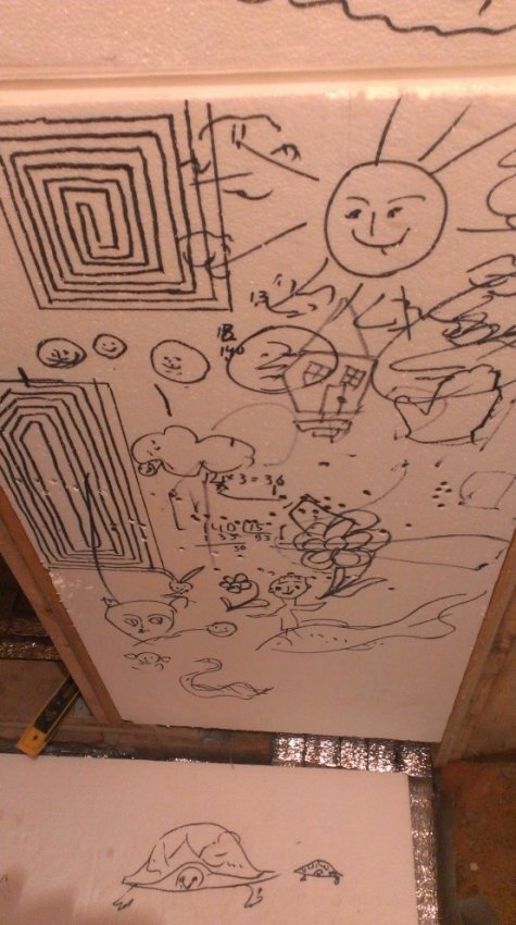 Рисовали схему укладки труб + дочка еще дорисовала тут своих художеств )